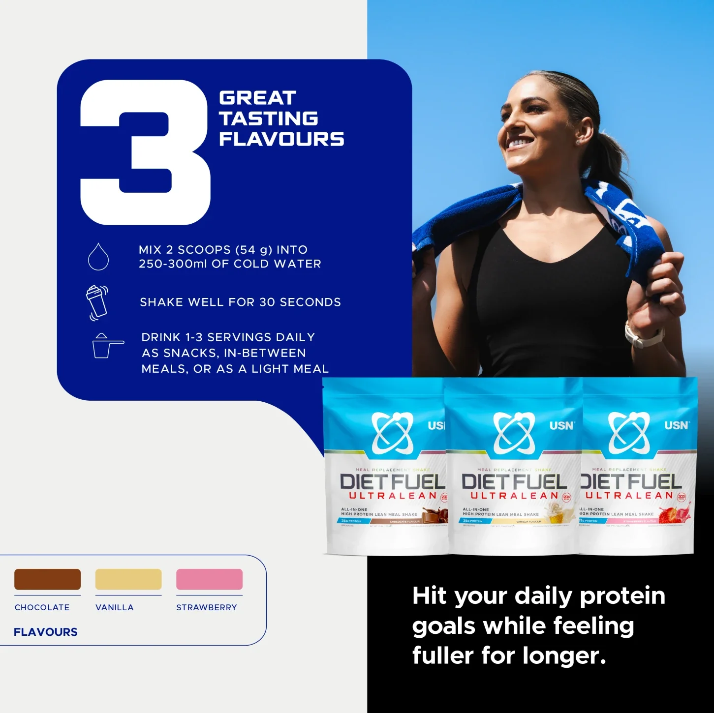 Support your body when you’re on an intense diet to reach your ultimate weight-loss goals. USN’s Diet Fuel Ultralean is a complete high-protein, low-carb, low-fat light meal replacement with essential vitamins and minerals.